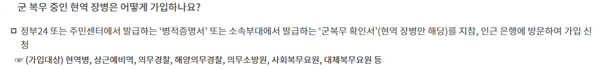 또한, 복무 중인 현역 장병도 가입할 수 있습니다.