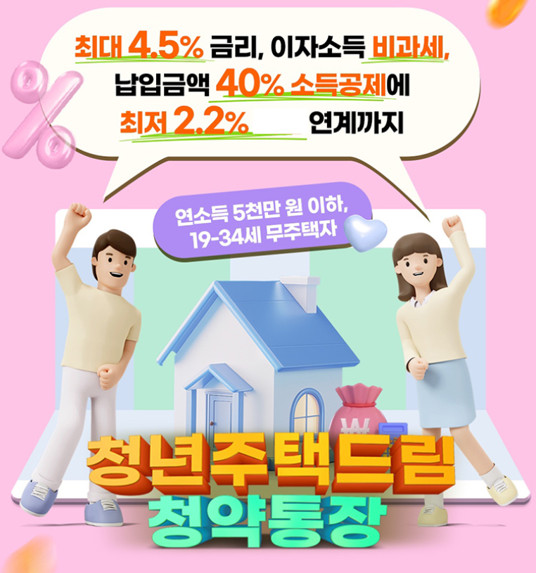 청년주택드림 청약통장은 만 19세부터 34세까지의 무주택 청년들을 대상으로 하는 주택청약종합저축 상품입니다.