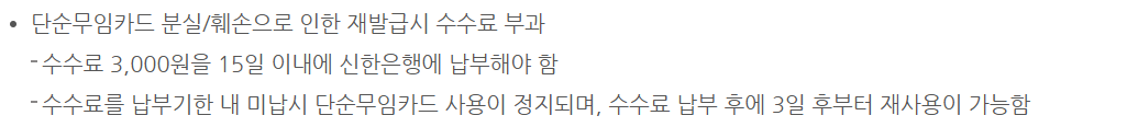카드를 분실한 경우 즉시 가까운 동주민센터 또는 신한은행 영업점을 방문하여 재발급 신청이 가능합니다.