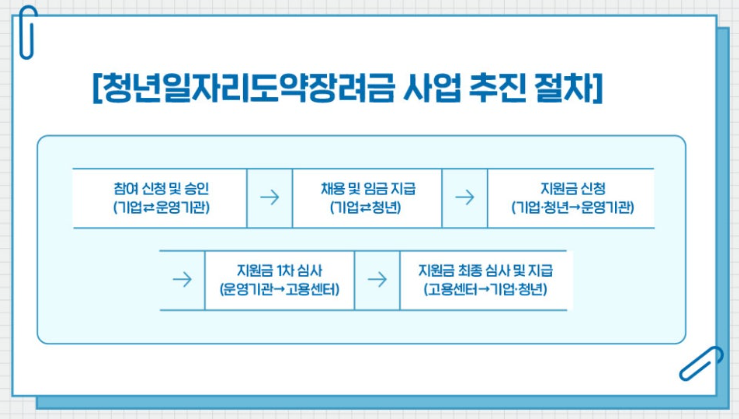 청년 일자리 도약 장려금의 신청 절차는 다음과 같습니다.