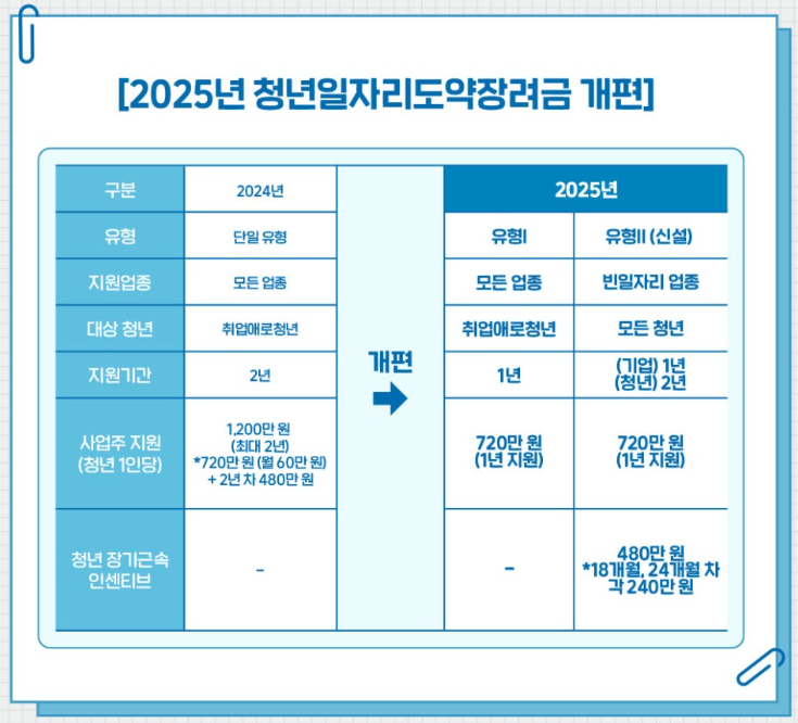 2025년부터는 기존 지원에 더해 새로운 유형이 추가되어 기업과 청년 모두에게 혜택이 확대되었습니다.