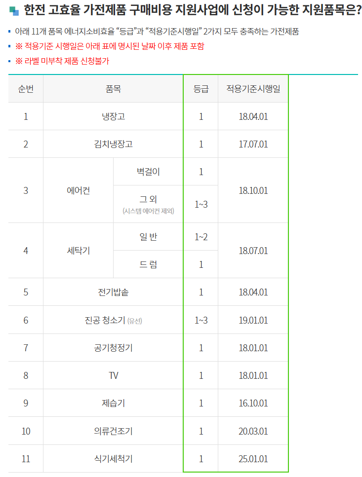 한전 고효율 가전제품 구매비용 지원사업