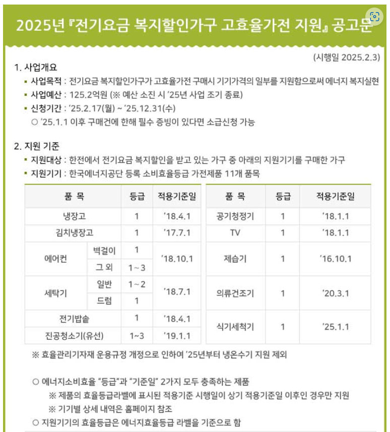 한전의 고효율 가전제품 구매지원사업은 단순한 환급 제도를 넘어, 에너지 효율화와 저소득층 지원이라는 두 가지 사회적 가치를 동시에 실현하는 사업입니다. 특히 2025년에는 그 규모와 지원 범위가 확대되면서, 보다 많은 국민이 실질적인 혜택을 체감할 수 있게 되었습니다.
