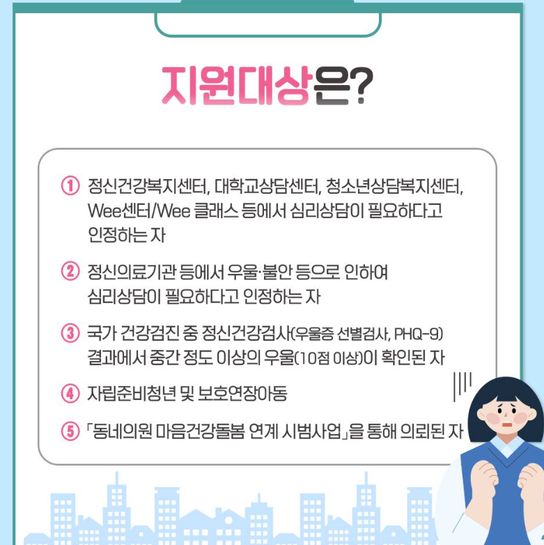 ✅ 정신건강복지센터 또는 대학교 상담센터 등에서 심리상담이 필요하다고 인정된 자