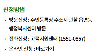 ● 방문 기관: 주민등록상 주소지 관할 읍면동 행정복지센터