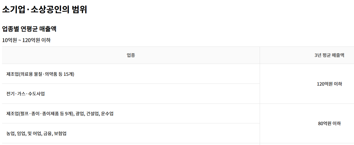 ex. 제조업의 경우 3년 평균 매출액이 120억원 이하