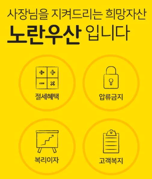 노란우산공제는 소기업·소상공인이 폐업, 사망, 노령 등의 이유로 생계가 어려워질 경우 일정 금액을 지급받아 생활의 안정을 도모할 수 있도록 돕는 공제제도입니다.