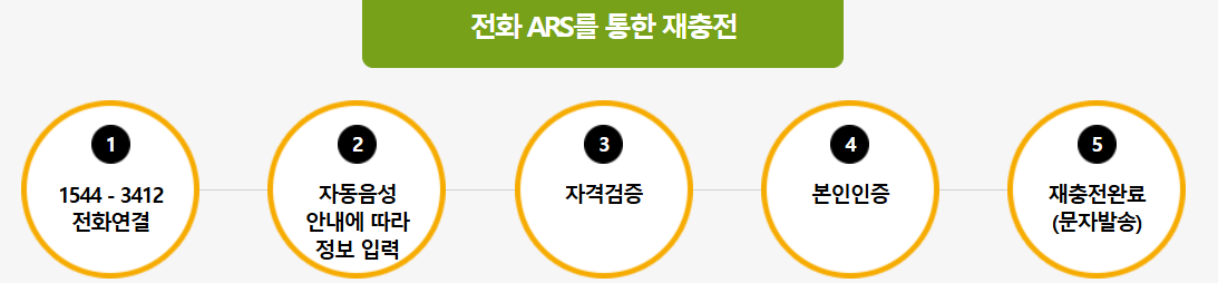 - 전화 신청: ARS(1544-3412)로 신청 가능 (단, 신규 발급이 아닌 재충전만 가능)