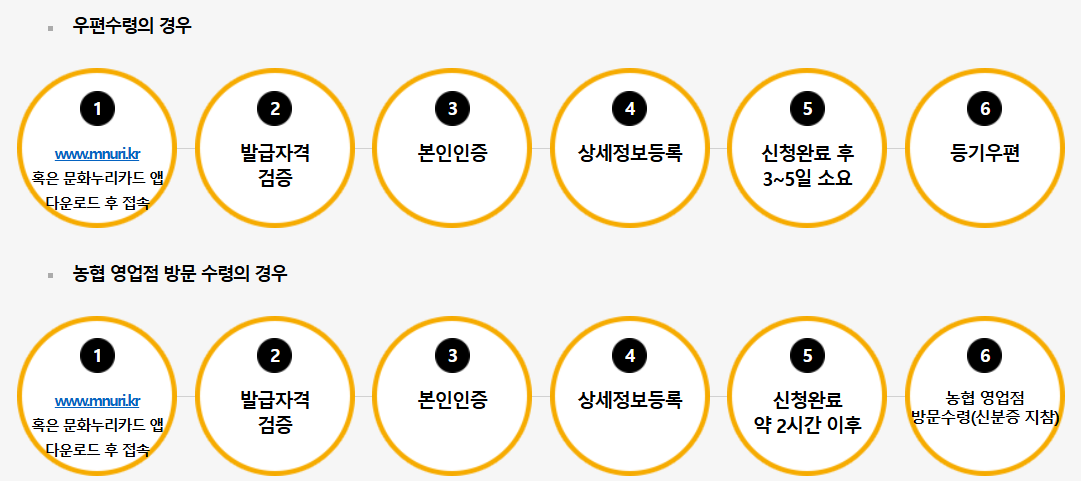 - 온라인 신청: 문화누리카드 공식 누리집 또는 문화누리카드 모바일 앱에서 간편하게 신청 가능