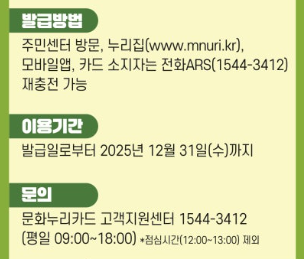 더 자세한 정보는 문화누리카드 공식홈페이지(www.mnuri.kr)에서 확인하세요!