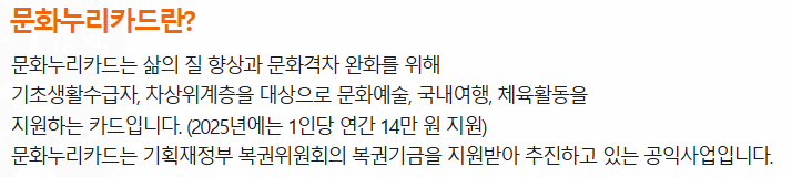 문화누리카드는 단순한 카드가 아니라, 문화생활을 풍성하게 만들어 주는 기회입니다.